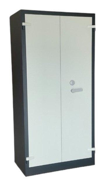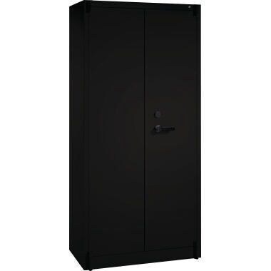 Feuerschutzschrank Tresor Optimus Express Schwarz/Grau | abschliessbar | Flügeltüren | Höhe 150 cm | Breite 70 cm | Doppelwand | Optimus | auf Sockel