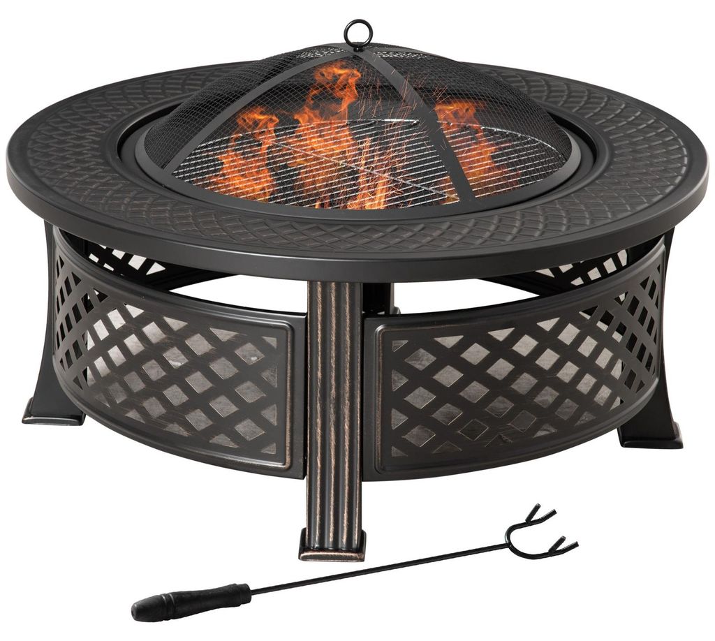 Feuerschale mit Schürhaken Funkenschutz Feuerkorb Feuertisch rund Feuerstelle für Garten Camping BBQ Stahl Schwarz 81 x 81 x 50 cm
