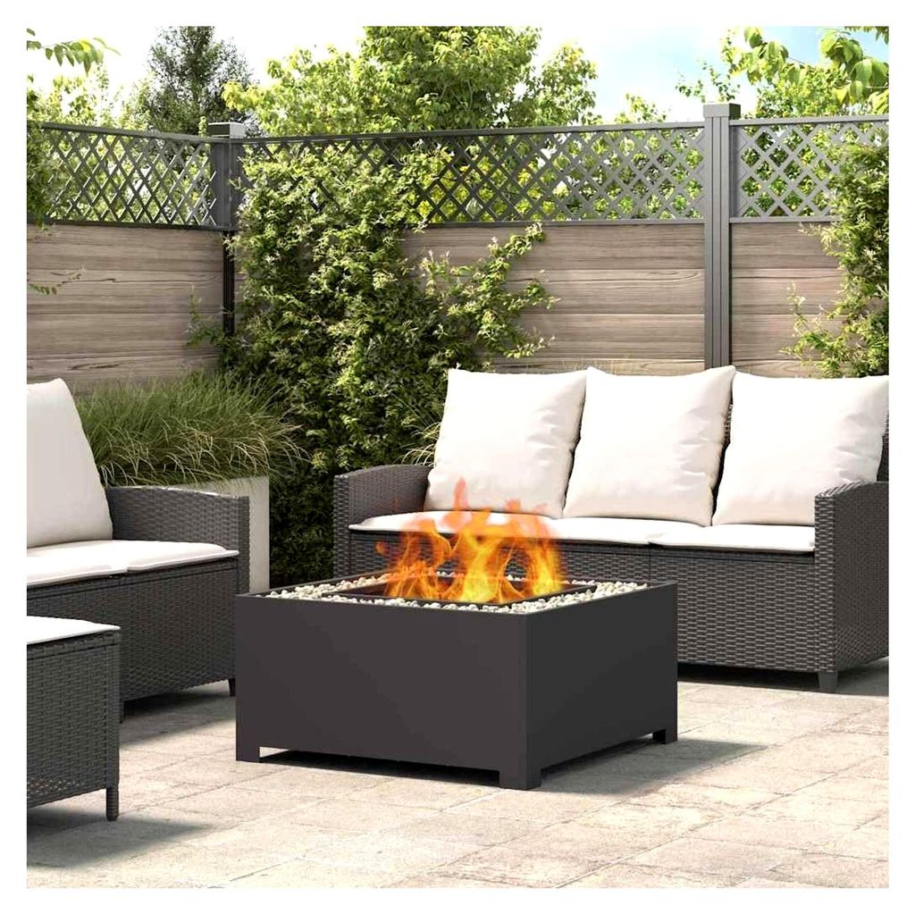 Feuerstelle Schwarz 80 x 80 x 40 cm aus Stahl für Garten, Terrasse und Außenbereich