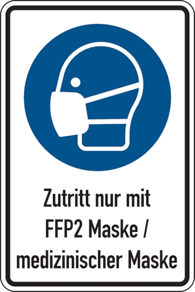 Gebotsschild, Zutritt nur mit medizinischer oder FFP2-Maske, ISO 7010, Aufkleber, Folie, 210x297 mm