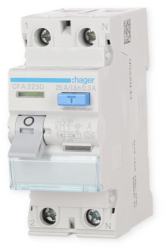 Hager CFA225D Fehlerstromschutzschalter, FI-Schalter 2 polig 6kA 25A 300mA Typ A