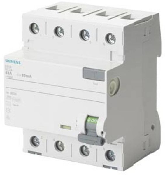 Siemens 5SV3346-3 FI-Schutzschalter, 4-polig, Typ F, kurzzeitverzögert, In: 63 A, 30 mA, Un AC: 400 V