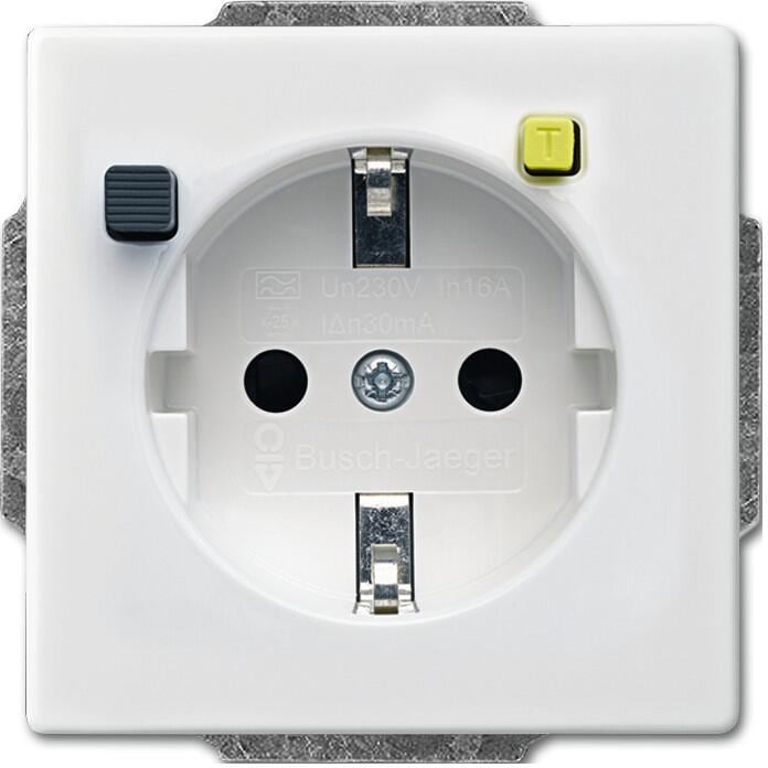 Busch-Jaeger 3120 EUCB-84 FI-SCHUKOMAT SCHUKO Steckdosen-Einsatz mit Fehlerstrom-Schutzschalter, future linear, studioweiß (2CKA003116A0662)