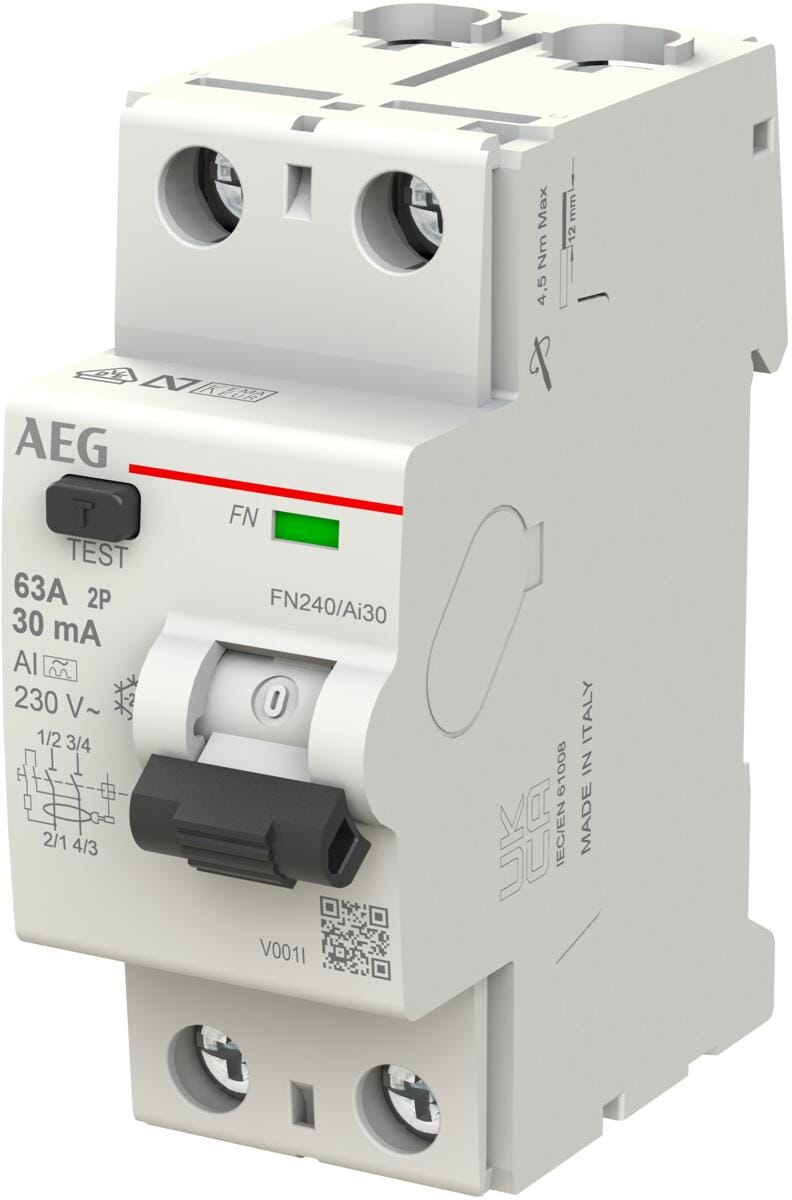 AEG FN263/AI30 FI-Schutzschalter AI 2p 230V 63A 0,03A 2TE REG (2CSF702456R1630)