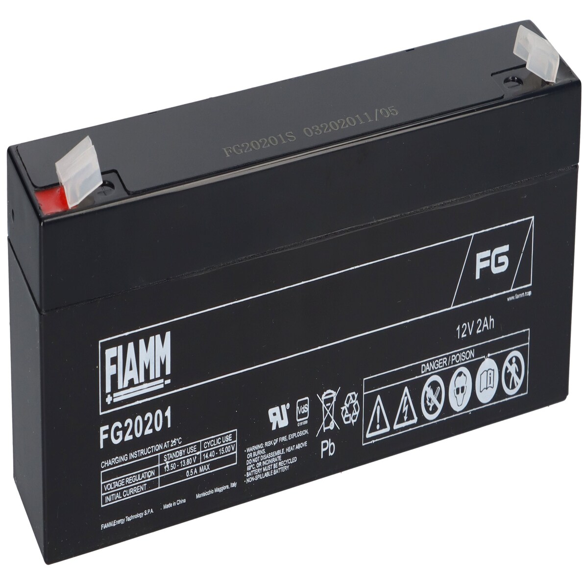 Fiamm FG20201 12V 2,0Ah Blei Akku / Blei Akku / AGM VRLA Blei-Vlies Akku AGM VRLA mit VdS