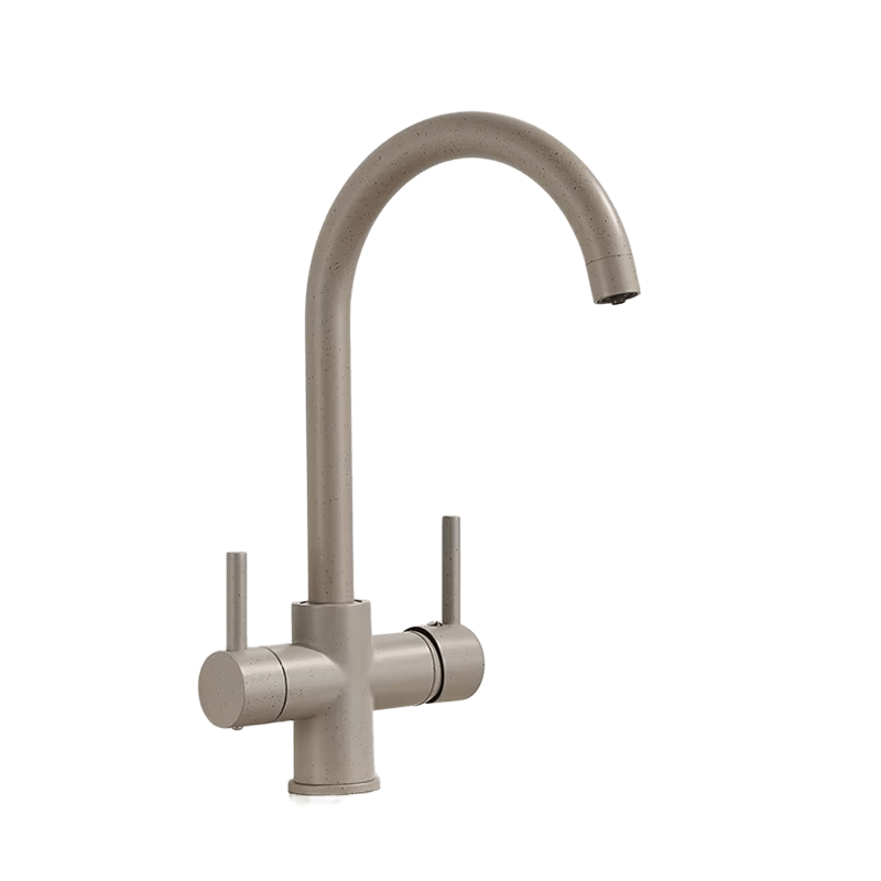 KLARWERK Julie | 3-Wege Armatur Edelstahl Beige Sandfarben | Filter Trinkwasser Wasserhahn Küche | 360° Osmose Mischbatterie U-Auslauf 3 Anschlüsse
