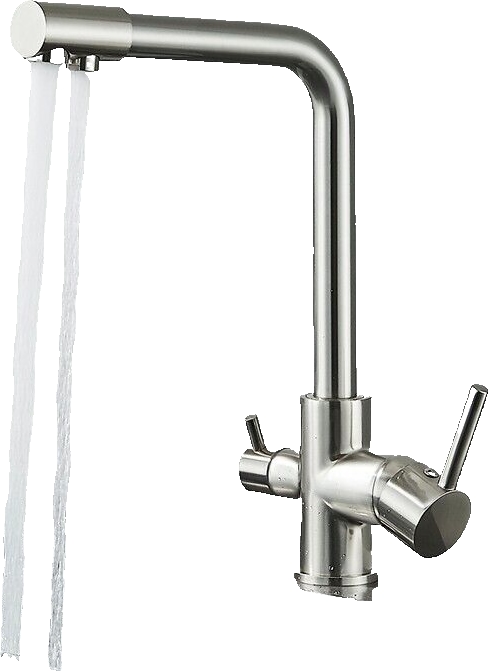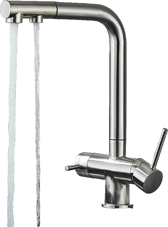 Felix | 3 Wege Premium Silber gebürstet Trinkwasser Armatur | Edelstahl Osmose Wasserhahn Küche |Mischbatterie - 360 Grad | Filter 3 Anschlüsse