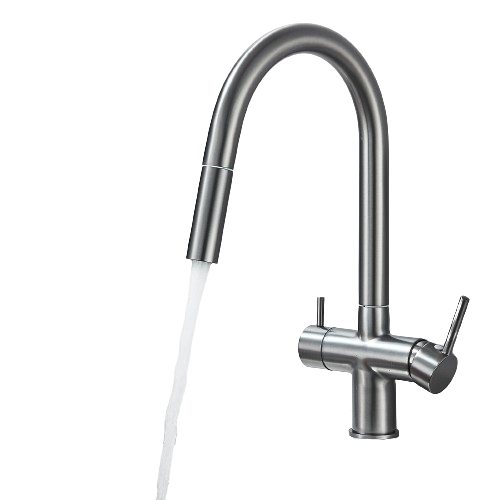 Küchenarmatur mit Filter - 3-Wege Wasserhahn - Doppelte Griffe - Ausziehbrause - 360° schwenkbar - Einlochmontage - Edelstahl - Keramikkartusche ...