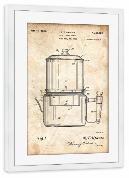 Poster mit Rahmen weiß "Filterkaffeemaschine (Antik)" artboxONE - Essen & Trinken