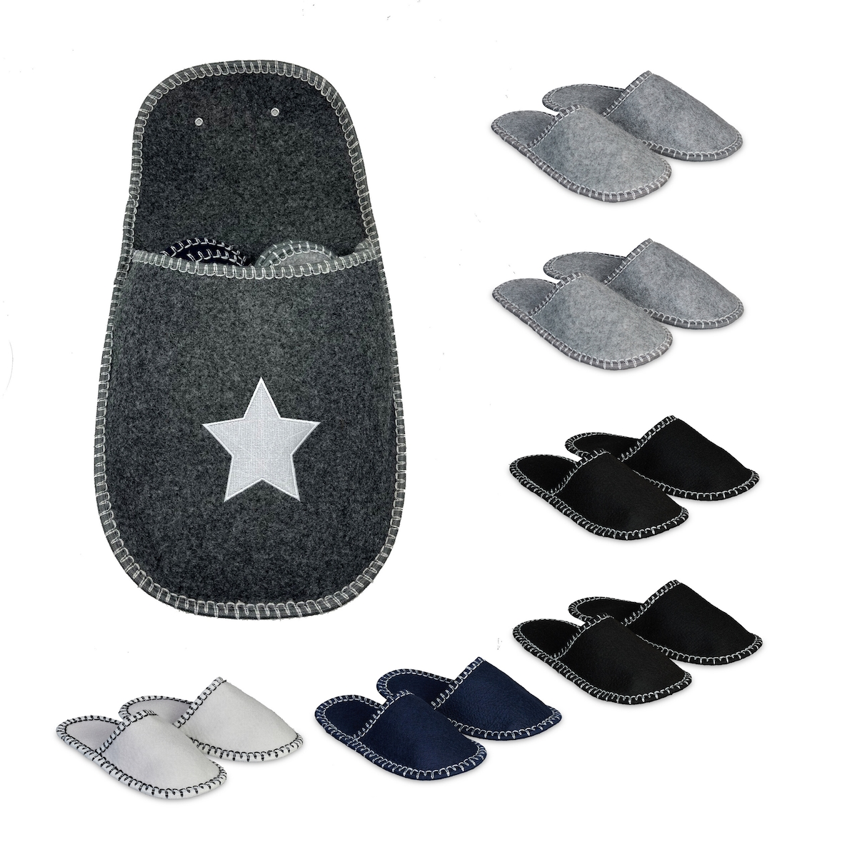 Relaxdays Gästehausschuhe 6 Paar, Hausschuhe, Stern-Tasche, Größen 36-45, Filzpantoffeln, Antirutsch-Sohle, mehrfarbig