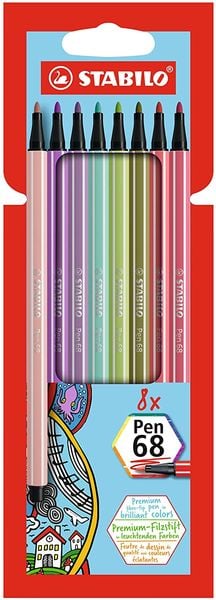 STABILO Pen 68 Filzstift - 1 mm - pastell - 8er Set - Kartonetui