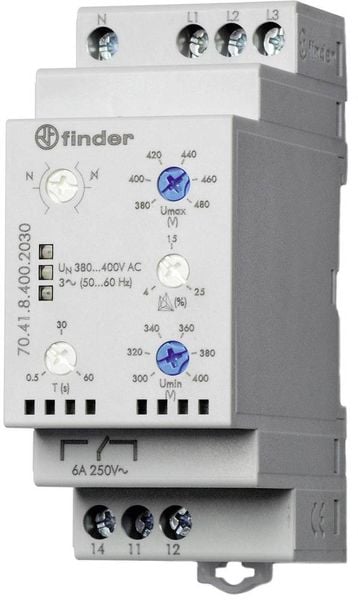Überwachungsrelais 380 - 415 V/AC 1 Wechsler Finder 70.41.8.400.2030 1 St.