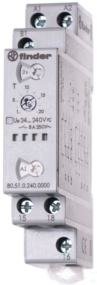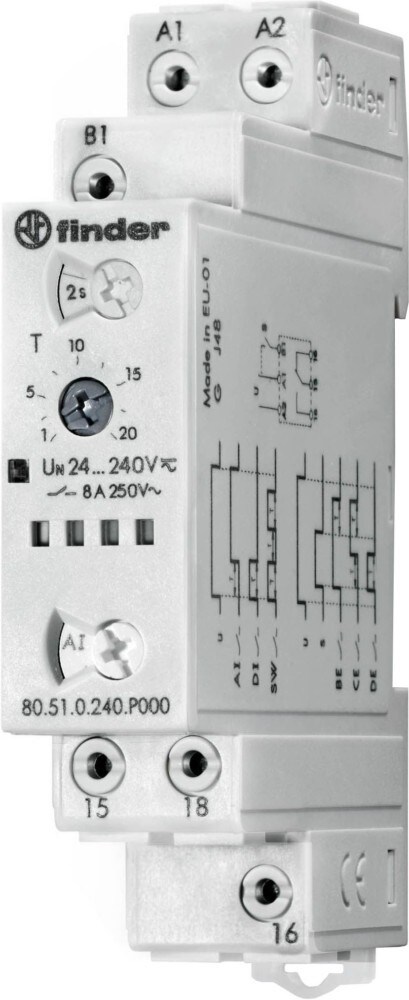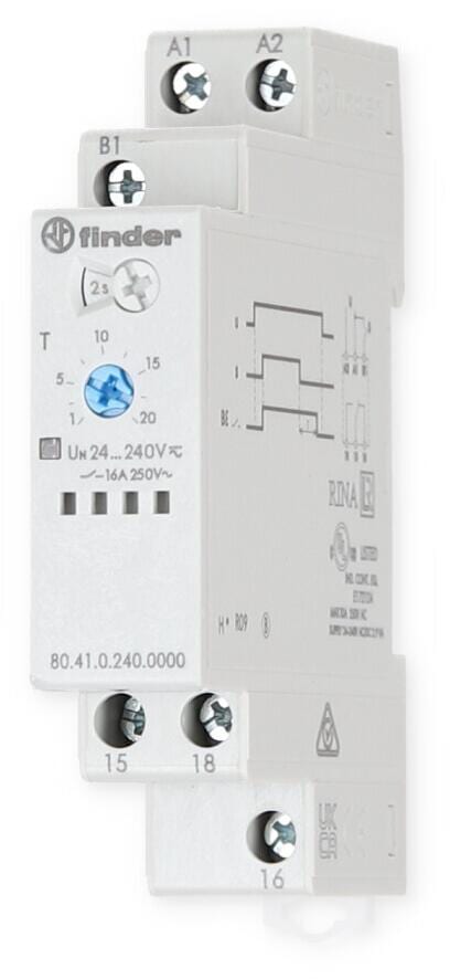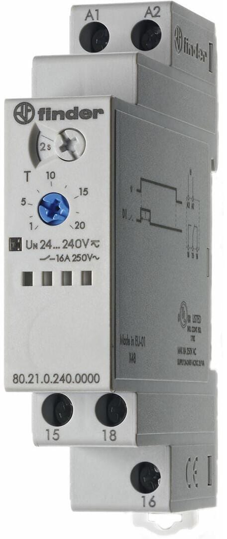 Finder 80.41.0.240.0000 Zeitrelais 16A 24-240V UC, Rückfallverzögerung, 1 Wechsler