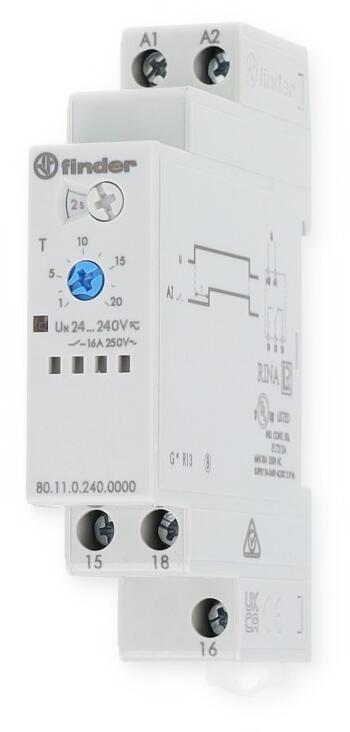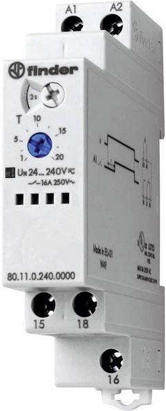 Finder 80.11.0.240.0000 Zeitrelais 16A 24-240VUC, Ansprechverzögerung, 16A, 1 Wechsler