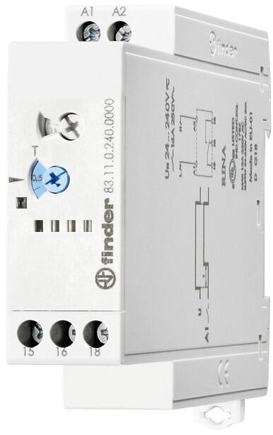 Finder 83.11.0.240.0000 Zeitrelais 16A 24-240VUC Einschaltverzögerung, 1 Wechsler, 16A, 250V AC