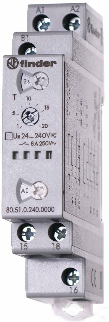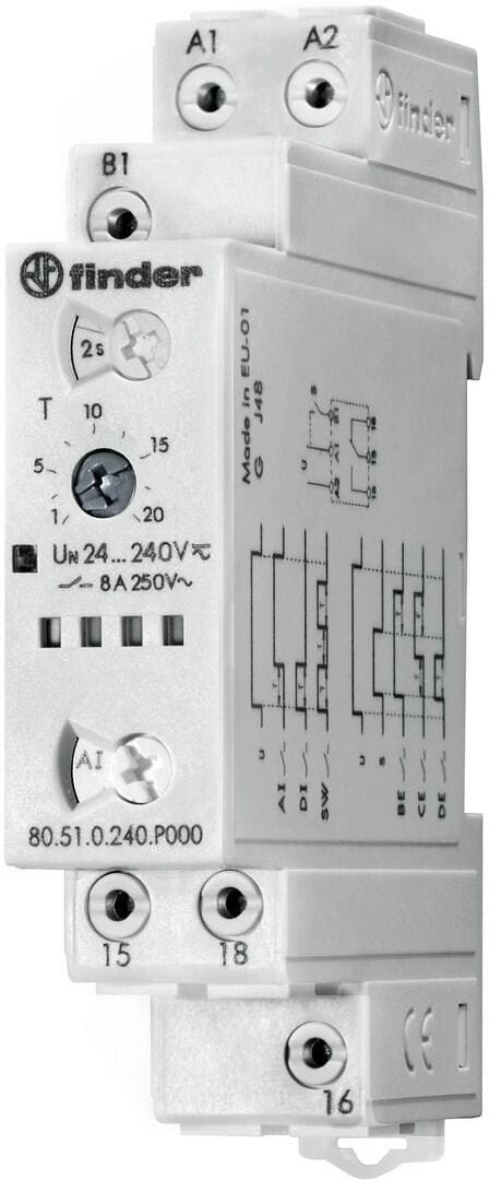 Finder 80.41.0.240.0000 80.41.0.240.0000 Zeitrelais Monofunktional 1 St. Zeitbereich: 0.1 s - 20 h 1 Wechsler