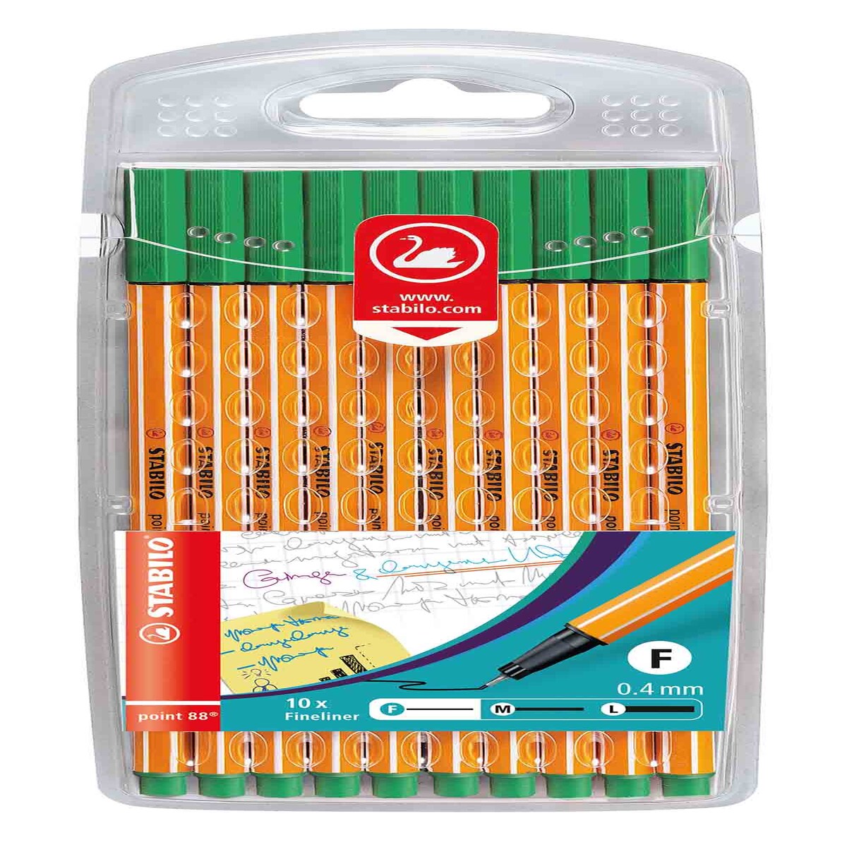 STABILO point 88 Fineliner - 0,4 mm - 10er Set - grün