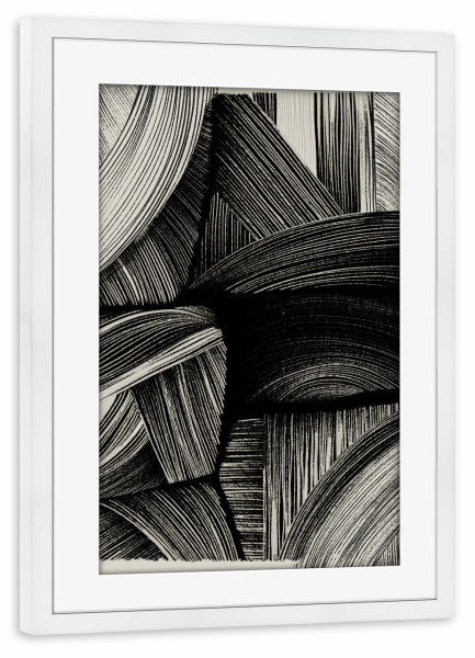 Poster mit Rahmen weiß "Stroh Kunst" artboxONE - Abstrakt - Abstrakt,Dekorativ,Linien,Fineline,Beige,Schwarz,Treechild
