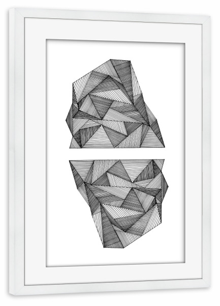 Poster mit Rahmen weiß "Geo Berg I" artboxONE - Abstrakt,Schwarzweiß,Geometrie - Geometrie,Berge,Eisberg,Striche,Bleistift,Fineliner,Minimal,Schlicht
