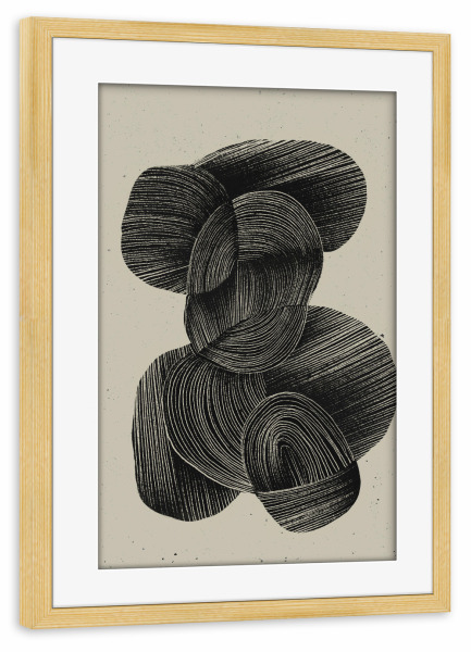 Poster mit Rahmen kiefer "Stroh Kugeln" artboxONE - Abstrakt,Geometrie - Stroh,Fineline,Abstrakt,Dekorative,Kunst,Schlicht,Beige,Schwarz,Treechild