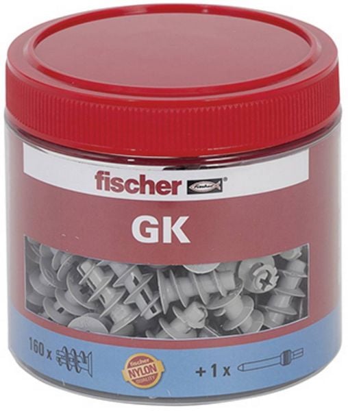 fischer Gipskartondübel GK, Dose Dübel, hellgrau, 160 Stück
