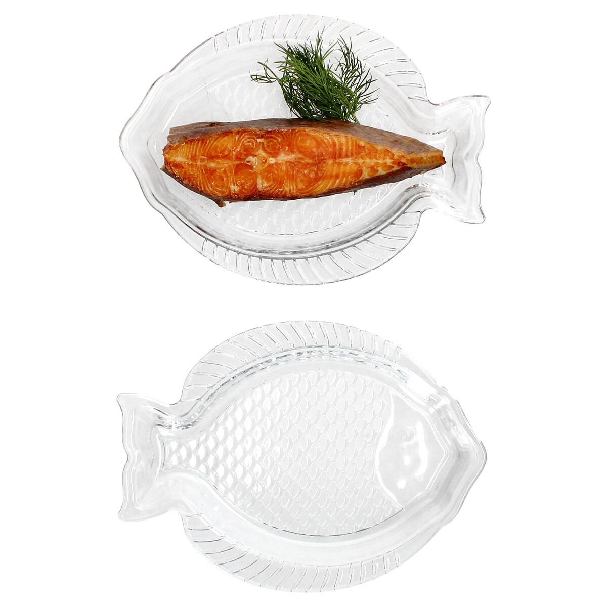 2x Fischplatte OSLO Gr. M LxB 29x16cm Glas Fisch-Relief Servier-Teller Garnelen