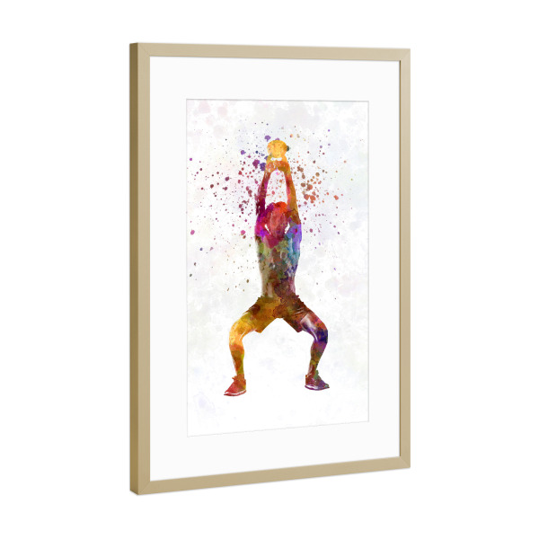 Poster mit Rahmen Gold "Watercolor fitness-m" artboxONE - Sport - Sport,Sports,Watercolor,Fitness,Gym,Exercise,Athlete,Gymnast,Olympic