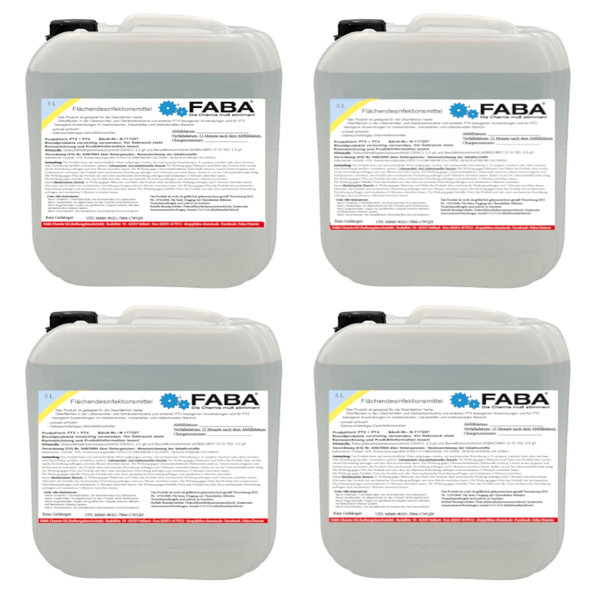 FABA Flächendesinfektionsmittel 4 x 5 L Flächendesinfektion Oberflächen Desinfektionsmittel ohne Alkohol