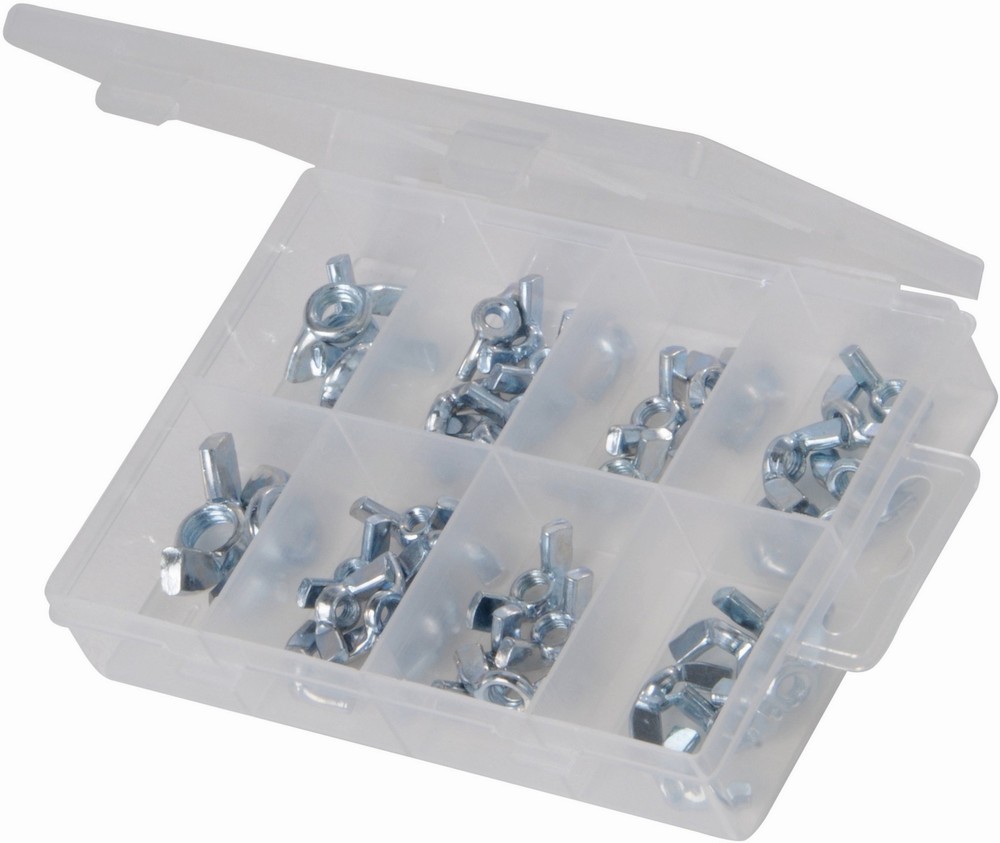 Normex Flügelmuttern in durchsichtiger Sortimentsbox geläufige Größen