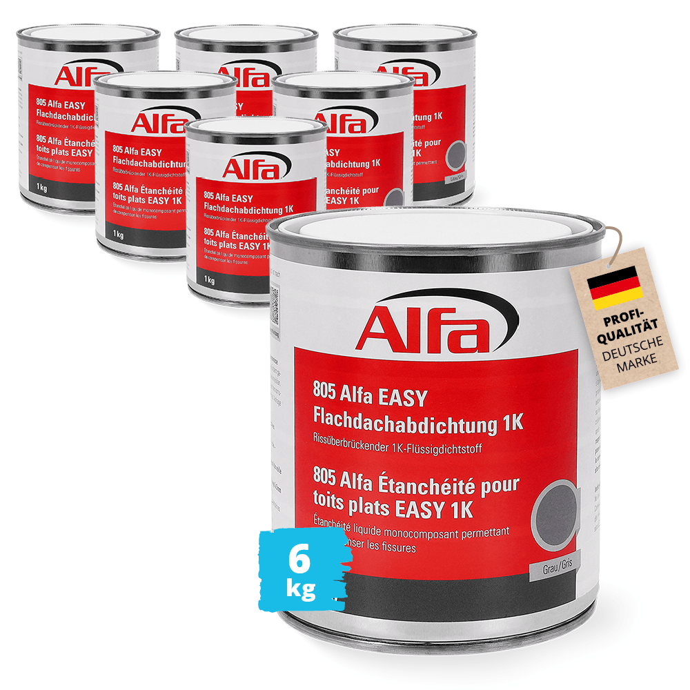 6 kg Alfa Flüssigkunststoff Flachdachabdichtung Dachabdichtung Dach Balkonabdichtung Garagendach Flachdach abdichten 1K-Dichtstoff Balkon Terrasse