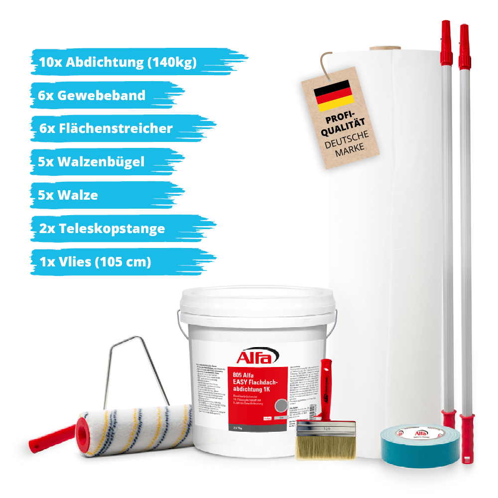 Alfa Beschichtungsset ideal zur Flachdachabdichtung mit 24 Teilen Flüssigkunststoff Abdichten - Flüssigkunststoff Flachdachabdichtung Garagendach