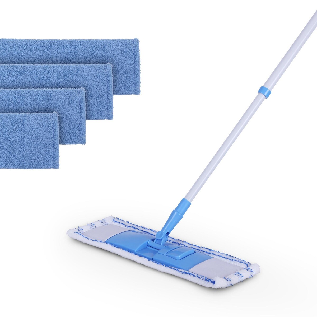 Flachmopp Set Wischmop Set Bodenwischer Mopp Mop Reinigungssystem mit 2 Wischbezügen blau