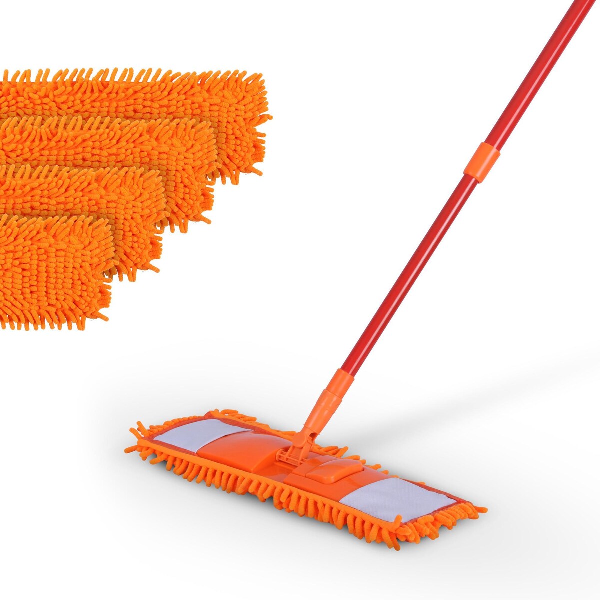 Bodenwischer Set ( Orange ) inkl. 4 Ersatzbezüge - Wischmopp mit Fußklick 360 Grad Gelenk für alle Ecken - Komfort Bodenreiniger Flachmopp Wischmopp