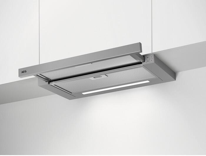 AEG DPB3622S Extractor 3000 Dunstabzugshaube Flachschirmhaube 59,8cm breit LED-Beleuchtung Drucktasten edelstahl