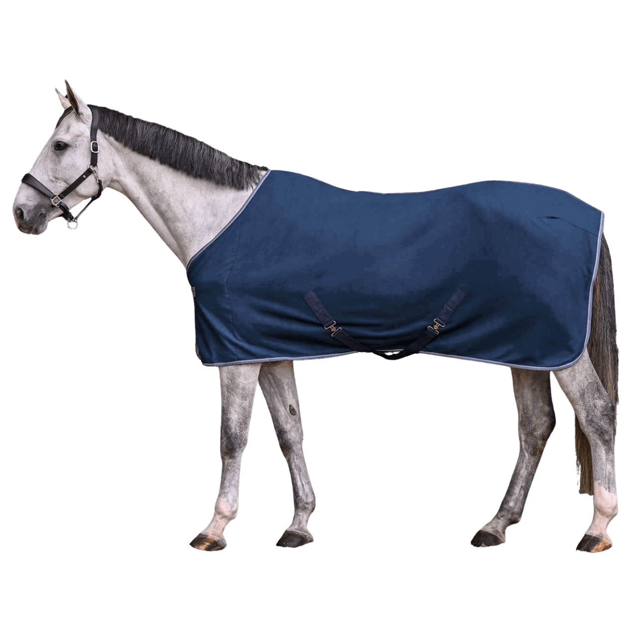 HorseGuard Pferde Fleecedecke Rockford Abschwitzdecke für Pferde mit 2 Kreuzgurten, Anti-pilling-Fleece, Farbe:dunkelblau, Größe:165