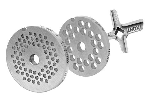 WOLFCUT Fleischwolfscheibensatz 3 mm + 6 mm Bohrung und ein Kreuzmesser Eversharp kompatibel mit allen gängigen Fleischwolf Marken Größe 5