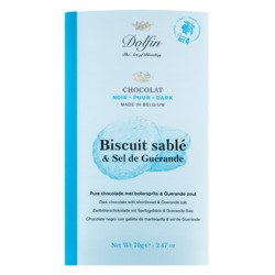 Zartbitterschokolade mit Spritzgebäck und Salz von Dolfin, Tafelschokolade, Biscuit sablé & fleur de sel, 70 g