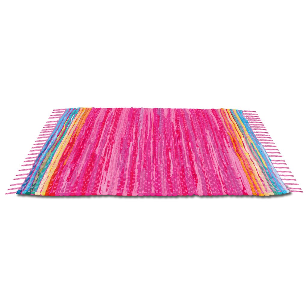 Flickenteppich handgewebter Teppich aus Baumwolle, stylischer und strapazierfähiger Fleckerlteppich (50 x 80cm / pink - rosa)