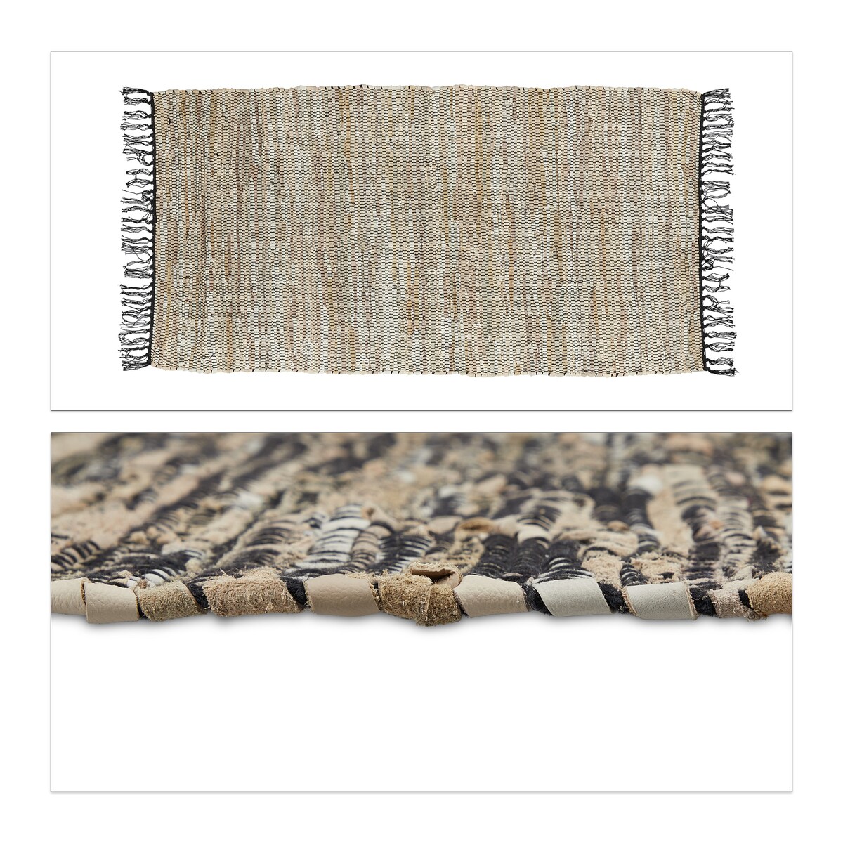 Flickenteppich Lederteppich Teppich strapazierfähig ( 70 x 180cm / Beige)