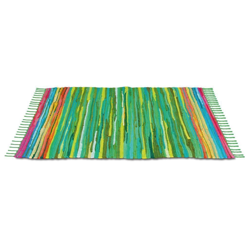 Flickenteppich handgewebter Teppich aus Baumwolle, stylischer und strapazierfähiger Fleckerlteppich (50 x 80cm / grün - dunkelgrün)