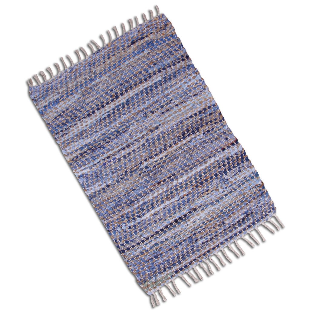 HOMESCAPES Denim Flickenteppich blau gestreift, 70x120 cm – Handwebteppich aus Recycling-Jeansstoff