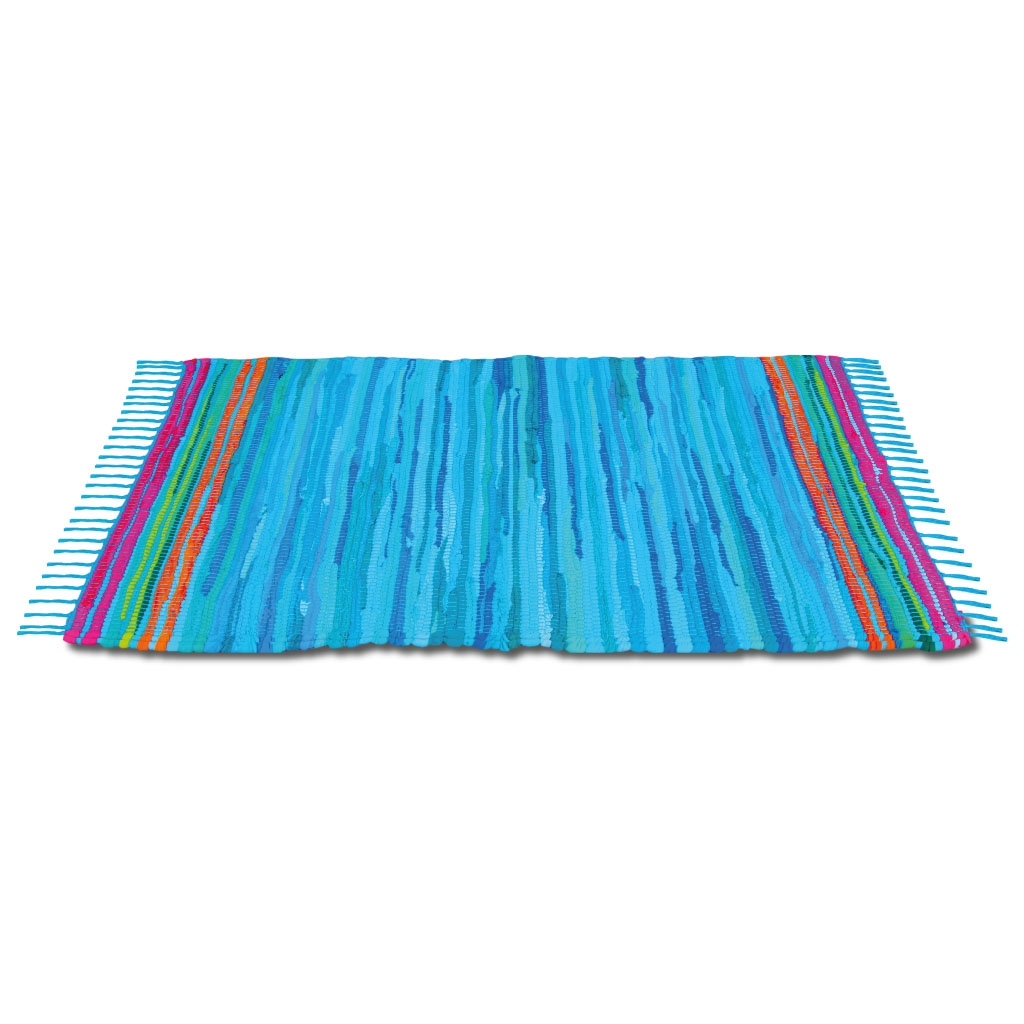 Flickenteppich handgewebter Teppich aus Baumwolle, stylischer und strapazierfähiger Fleckerlteppich (60 x 90cm / blau - dunkelblau)