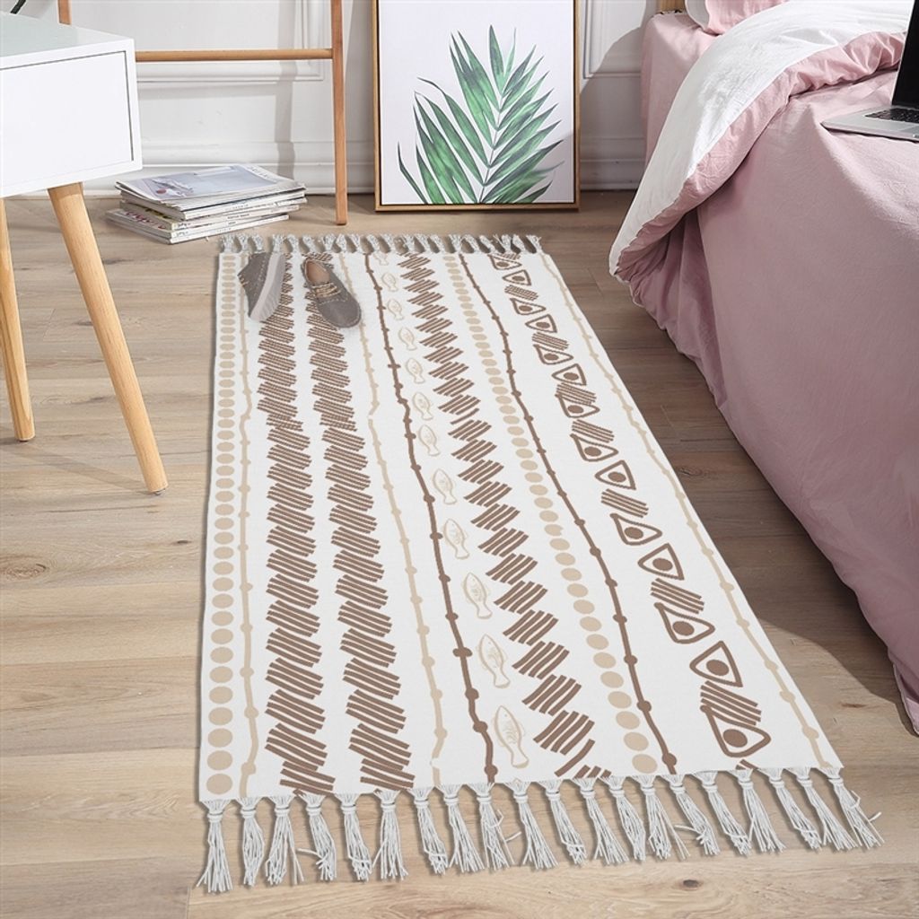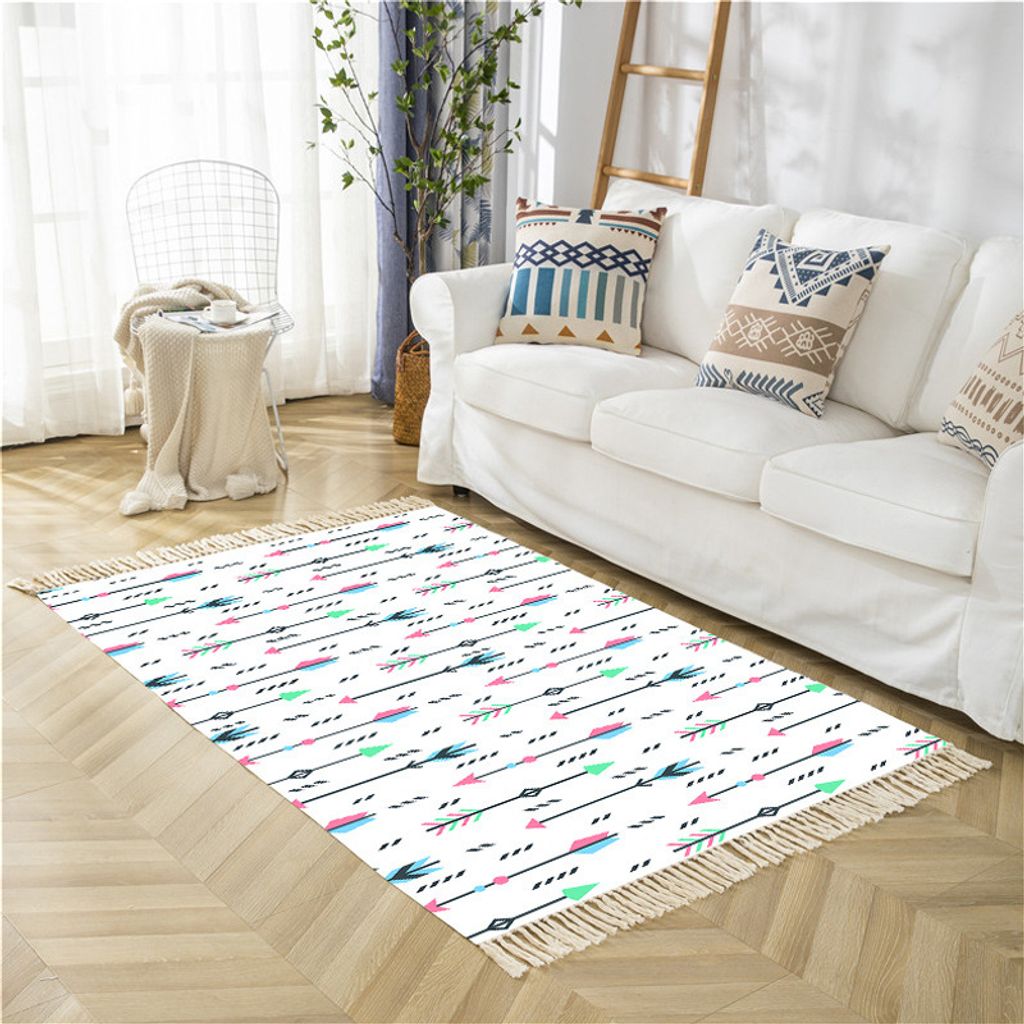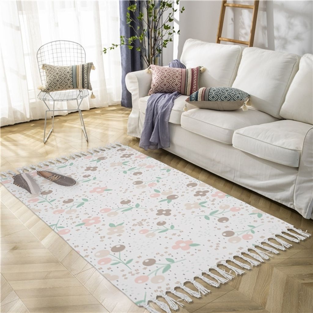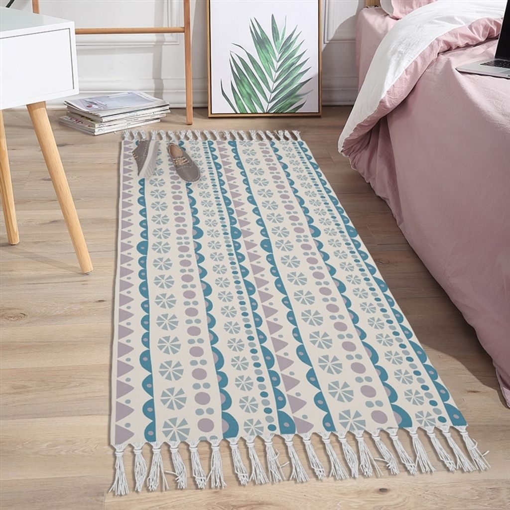 Flickenteppich Baumwolle Leinen Waschbar Multifunktion Teppich Bunt Läufer Handgewebt mit Fransenquaste, 60x120 cm