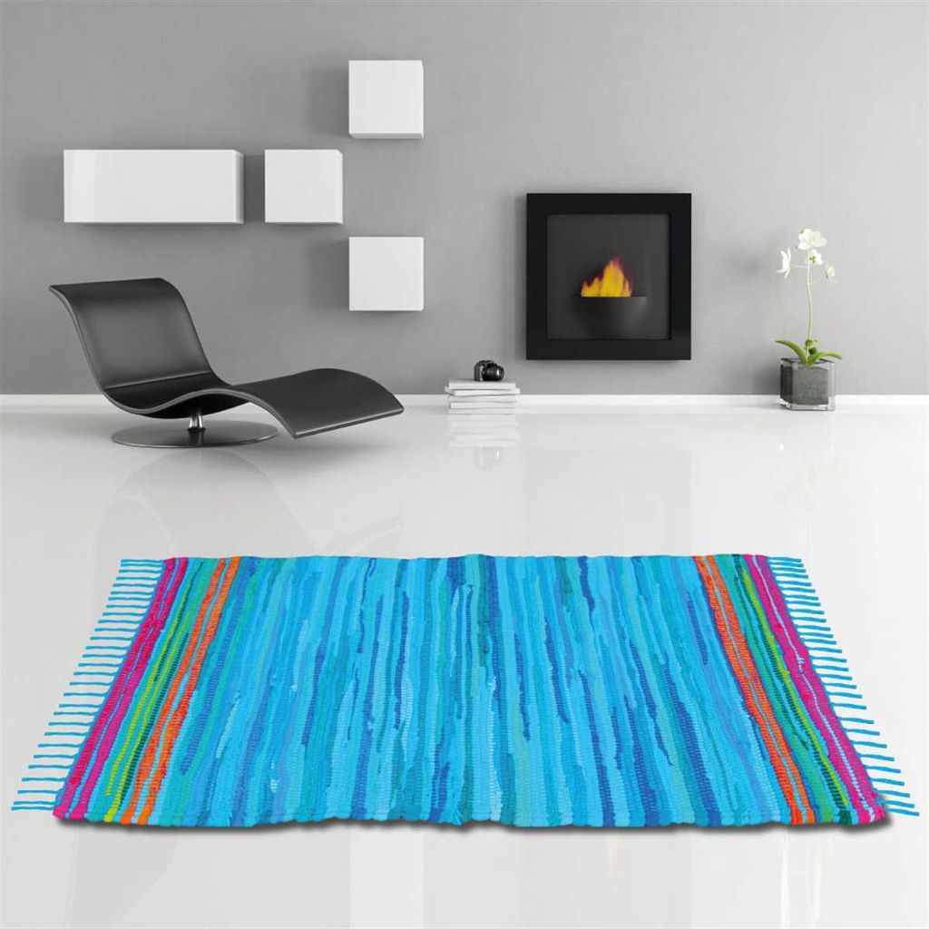 Flickenteppich handgewebter Teppich aus Baumwolle, stylischer und strapazierfähiger Fleckerlteppich (140 x 200cm / blau - dunkelblau)