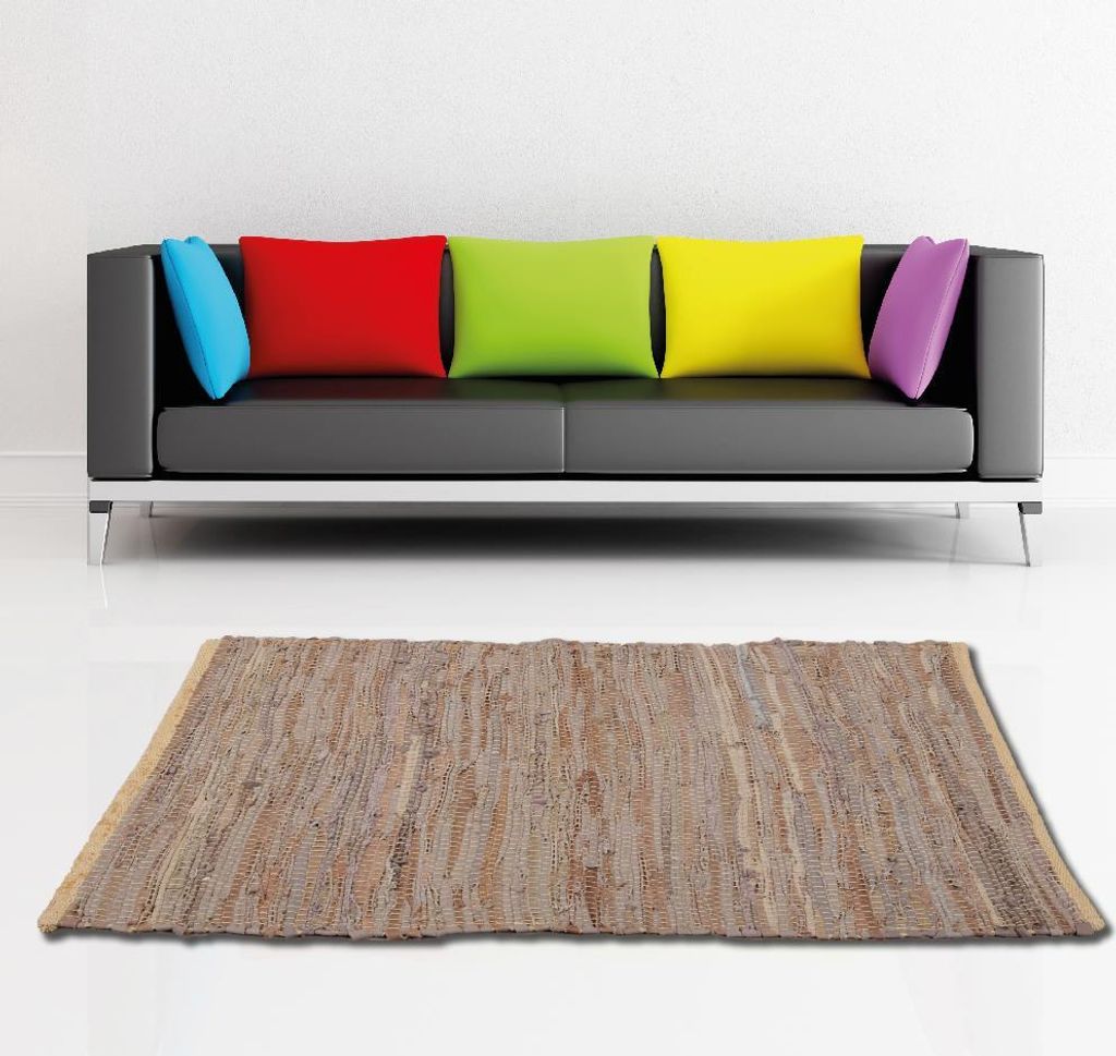 Flickenteppich Lederteppich Teppich strapazierfähig ( 90 x 150cm / Braun)
