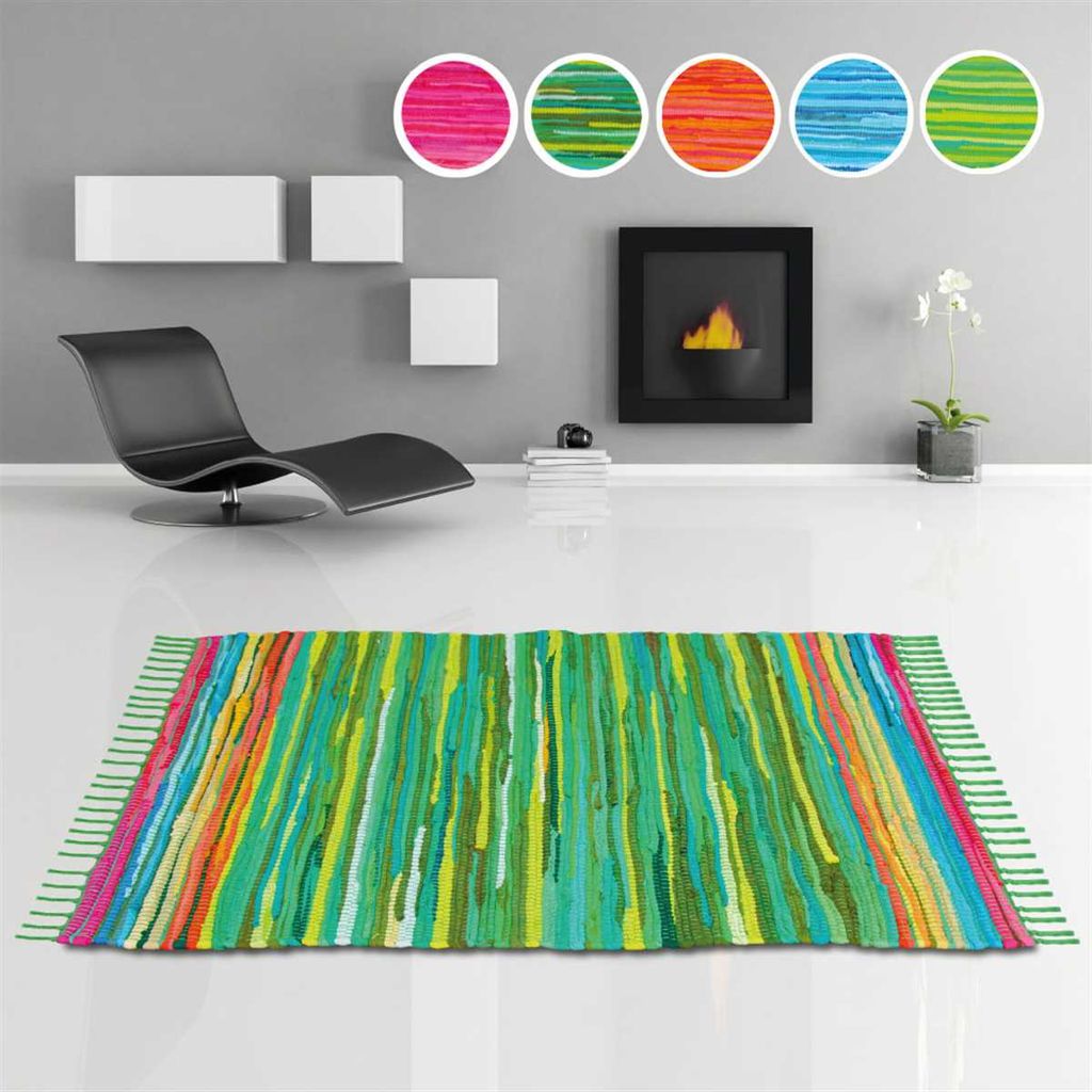 Flickenteppich handgewebter Teppich aus Baumwolle, stylischer und strapazierfähiger Fleckerlteppich (90 x 150cm / grün - dunkelgrün)
