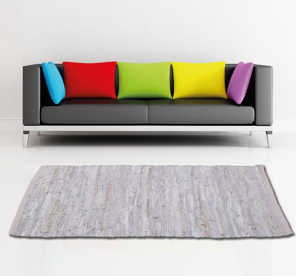 Flickenteppich Lederteppich Teppich strapazierfähig ( 90 x 150cm / Weiß)