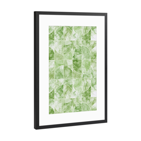 Poster mit Rahmen Schwarz (Metallic) "Marmorierte Geo-Fliesen grünlich" artboxONE - Geometrie,Marmor