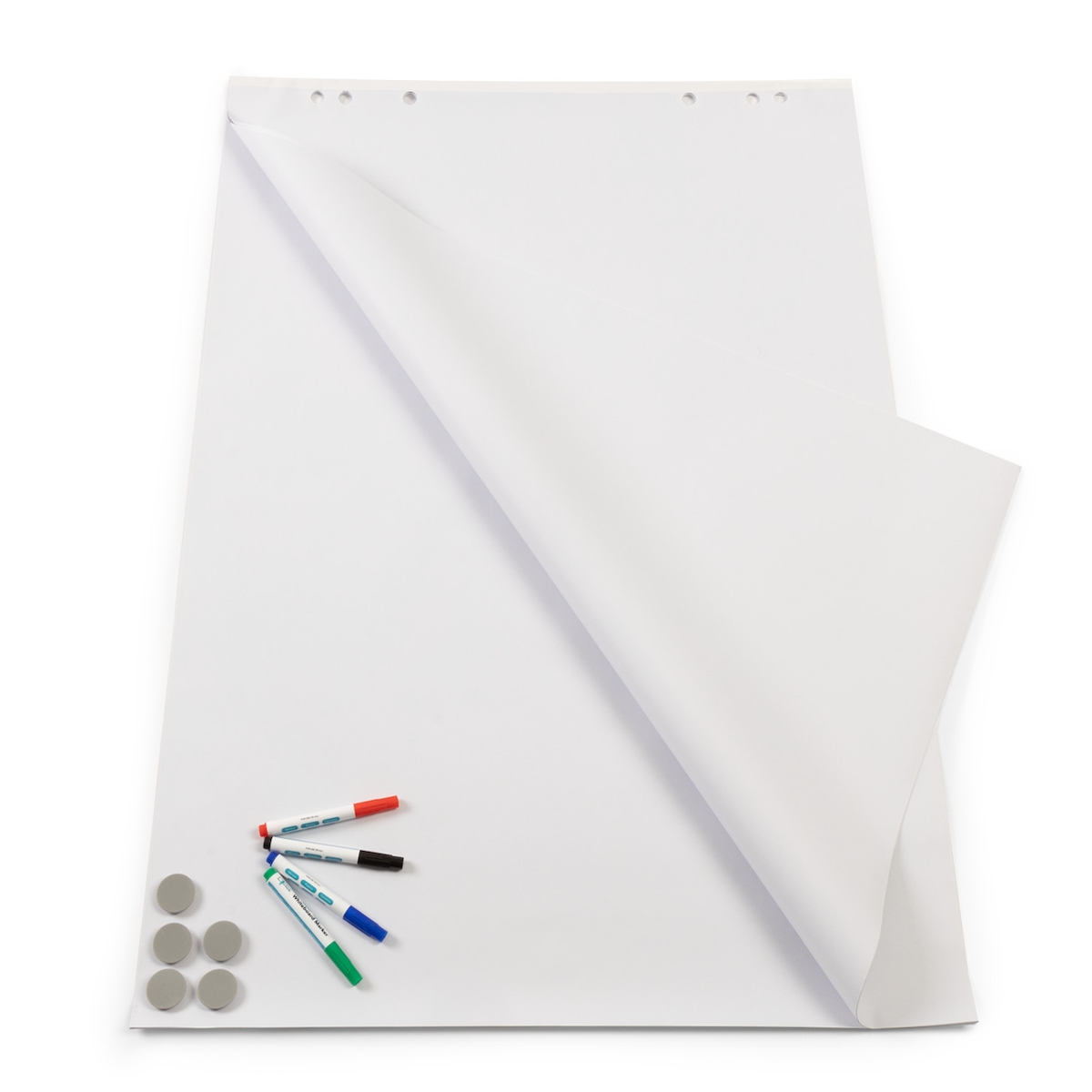 Flipchart Zubehör-Set Flipchart-Papier weiß - 80 g/m² Papier - 5 Magnete, 4 Marker - 68 x 98 cm