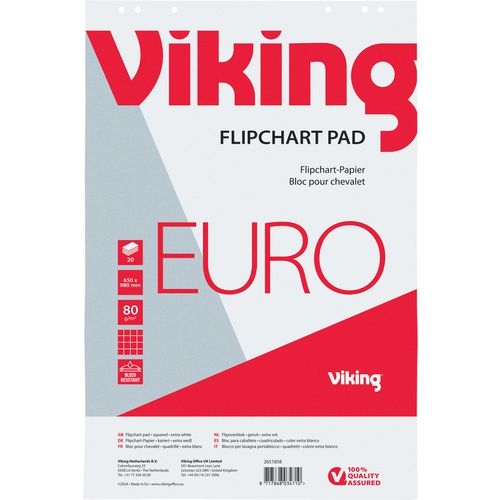 Viking Flipchart-Papier Euro 80 g/m² Kariert 20 Seiten 5 Stück à 20 Blatt